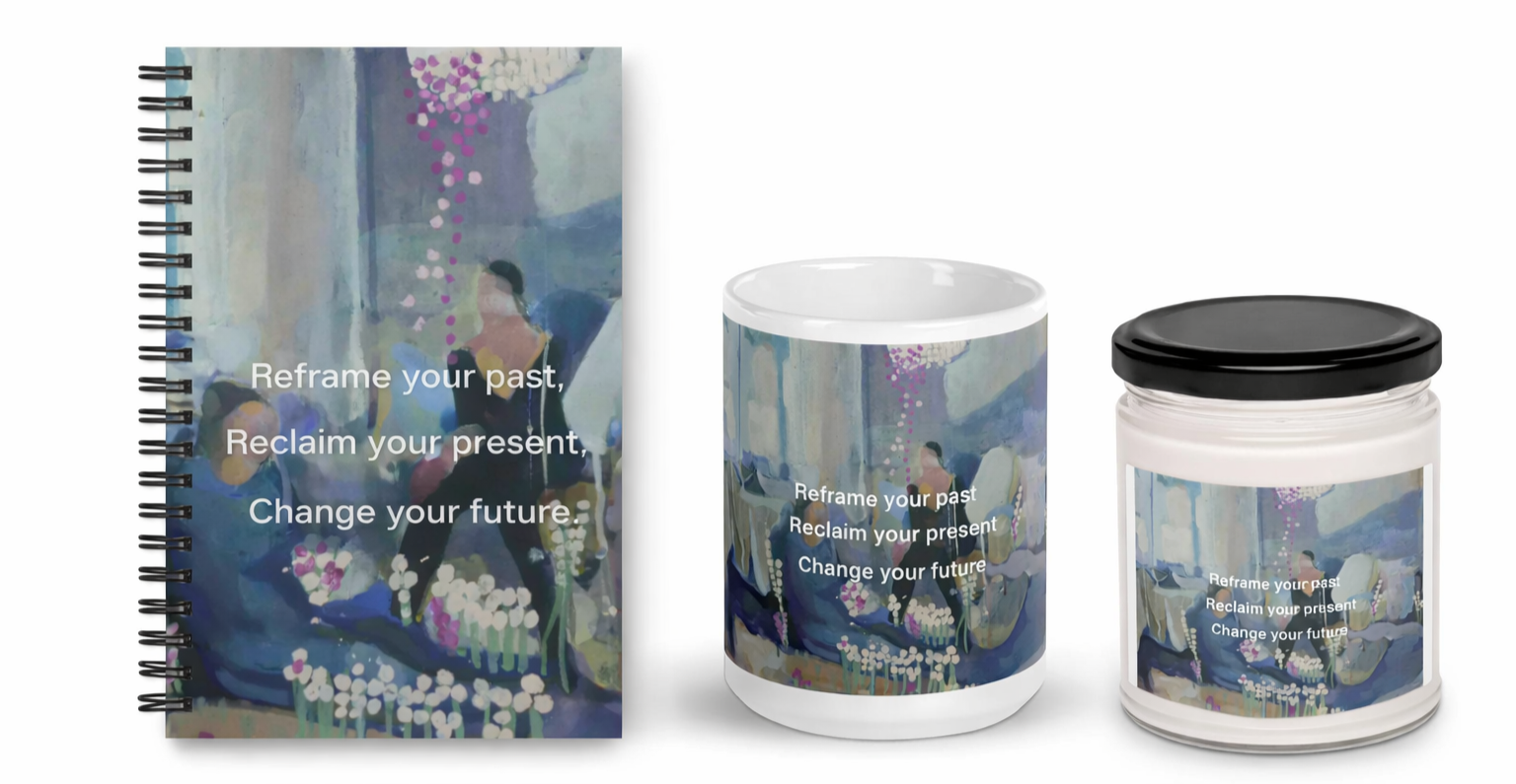 Hand-painted journals, mugs, and candles designed for reflection, grounding, and the quiet work of reframing the past